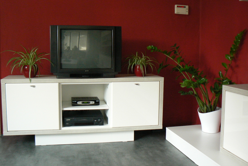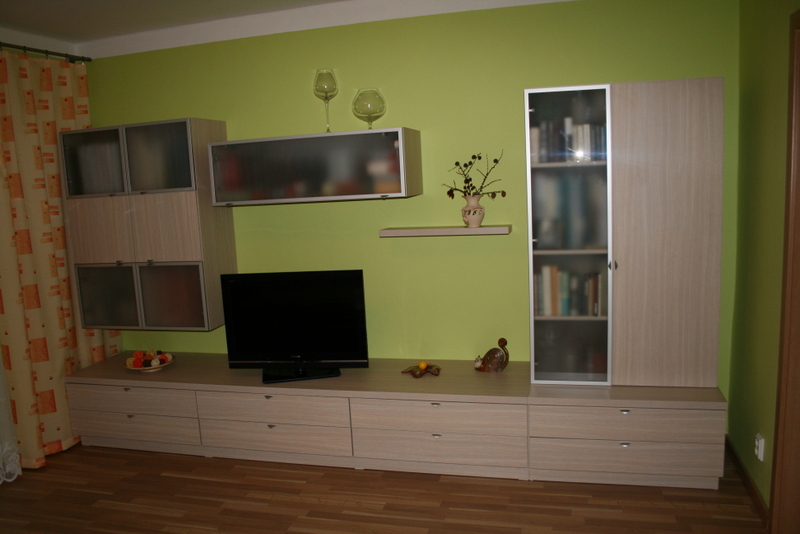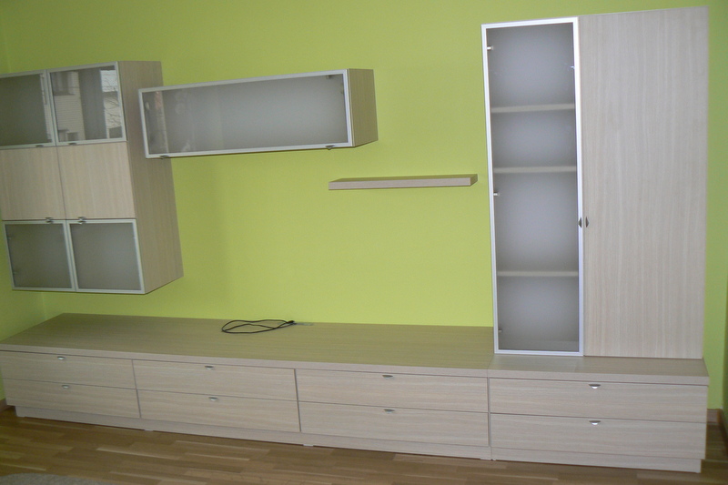 - Dnešním trendem obývacích stěn jsou nízké skříně s dostatečným prostorem pro velkou televizní obrazovku.